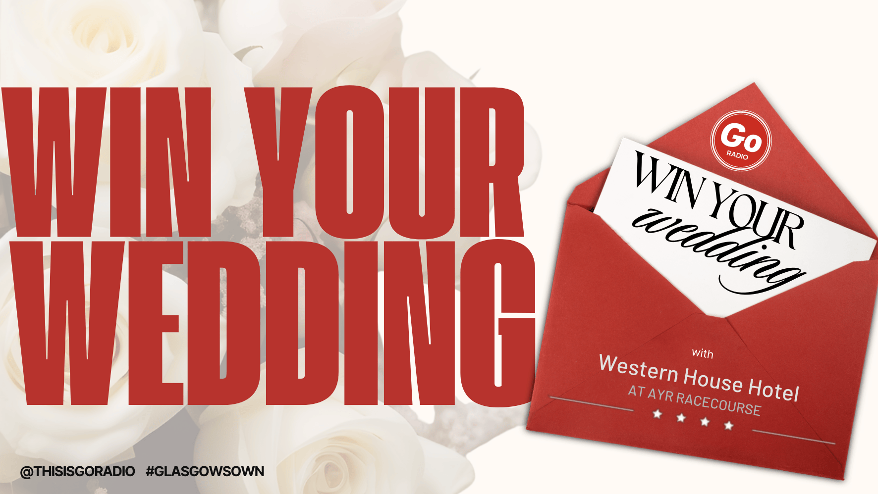 Win Your Dream Wedding in association with Go Radio Home / Weddings / Win Your Dream Wedding We’ve teamed up with the Go Radio to give one lucky couple the chance to win their dream wedding worth over £15,000 – while raising vital funds for charity. Enter Now This incredible competition will shortlist five couples, each tasked with raising as much money as possible for their chosen charity. The couple who raises the highest total will be crowned the winners and receive this unforgettable wedding prize. Enter Now View This amazing prize worth £15,000 includes everything you could need to have your Dream Day… The winning couple will enjoy a luxury wedding in our beautiful hotel, including a full wedding package for 50 guests. This includes a beautifully styled ceremony and reception, wedding meal, a silver drinks package, and an evening buffet to celebrate in style. A dedicated wedding liaison, master of ceremonies, and full audiovisual support will be provided on the day, ensuring everything runs seamlessly from start to finish. Your wedding will be fully dressed with Chiavari chairs, elegant table centres, linen tablecloths and napkins, and a choice of aisle runner and dancefloor. You’ll also enjoy a magic selfie mirror for unforgettable guest photos and professional evening entertainment from Kilted DJ. Also included in the prize… The couple will stay overnight in our stunning Ascot Suite, complete with a private hot tub, followed by a full Scottish breakfast with Champagne the next morning. You’ll also receive a wedding gift, including a silver photo frame and afternoon tea for parents, plus access to the hotel’s manicured private gardens for photos and outdoor celebrations. Stag & Hen Do Celebrations As part of the prize, the couple will also receive race tickets for both stag and hen celebrations, with up to 15 tickets each. PLUS in a truly unique moment, the winning couple will also receive race sponsorship at Ayr Racecourse, naming a race after them and attending the event to enjoy an Owners & Trainers lunch and present the race prize on the day. Collaborators The prize includes services from an incredible lineup of wedding professionals: Photography: Belvedere Images Wedding Cake: Infinite Indulgence Flowers: Red Red Rose Wedding Rings: Logan The Jewellers Bridal Gown & 2 Bridesmaid Dresses: Lily Loves Bridal Groom & Best Man Kilts: Slater Menswear Evening Entertainment: Kilted DJ Celebrant: Mandy Mitchell TLC Enter Now Head over to our friends at Go Radio to enter this fantastic competiton! Enter Now View Explore Our Weddings The Venue With a sweeping, tree-lined driveway leading to a magnificent manor house, this could be the moment you’ve always imagined. EXPLORE Testimonials Our couples say it best. Browse through their kind words and unforgettable moments to see what makes weddings at Western House Hotel so special. EXPLORE Wedding FAQs Our dedicated wedding team is here to help make your day unforgettable. Find answers to our most frequently asked questions here. EXPLORE Wedding Brochure Our wedding brochure is filled with everything you need to begin planning your perfect celebration at Western House Hotel. DOWNLOAD HERE Book a Wedding Appointment Arrange a private appointment and let our team walk you through the spaces where your celebration may take place. Wedding Appointment Wedding Videos A selection of videos reliving the magic of some recent special days here at Western House Hotel. Wedding Videos